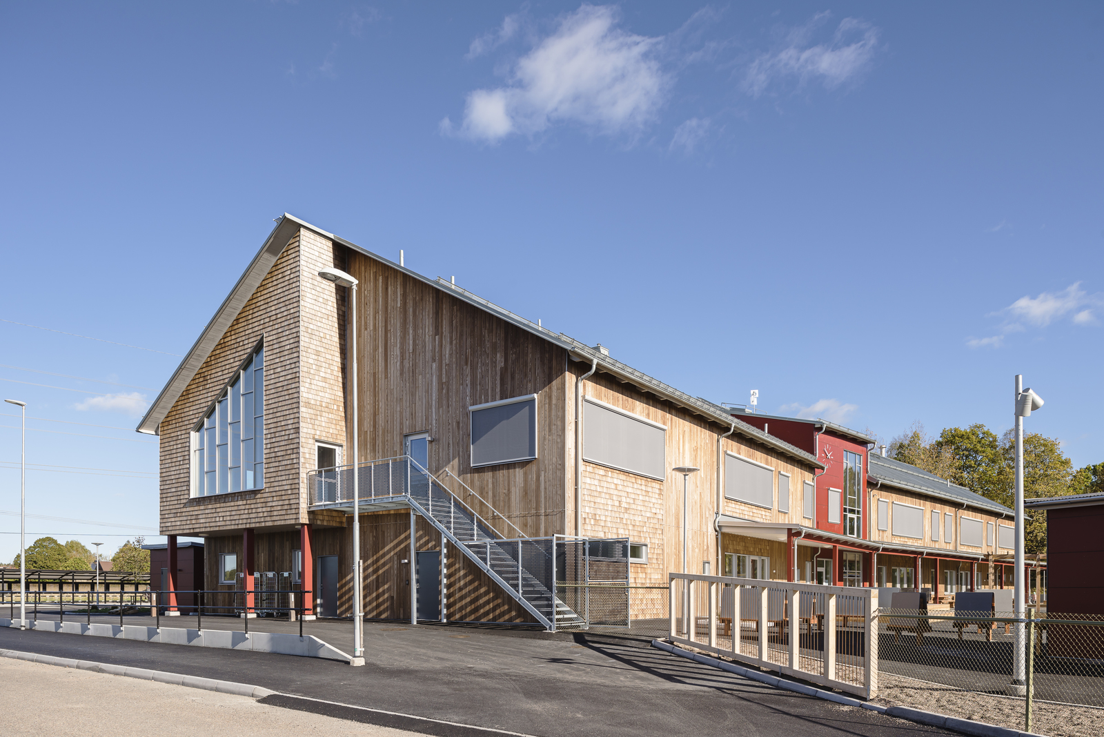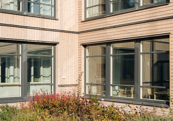 Modulariserade hus uppbyggda av ett fåtal olika lägenhetstyper som bidrar till ett kostnadseffektivt och snabbt byggande. De generöst djupa loftgångsfasaderna möjliggör plats för rekreation och umgänge. Träpanelen förstärker det ekologiska avtrycket som man uppnår av att bygga hus i naturliga material. I kombination med skivfasad och puts skapas en spännande dynamik i fasaderna.