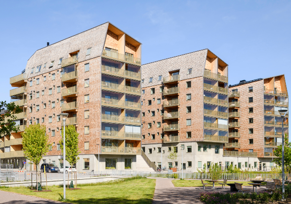 I skrivande stund är Trummens Strand i Växjö det största träprojektet i Sverige, och ett av de största träprojekten i Europa. Du hittar projektet söder om stadskärnan med utsikt över sjön Trummen. Huskropparna är byggda med massivträ och täckta med cederträspån från Moelven. Cederträspån är ett exklusivt men också prisvärt val som fasadmaterial till flerbostadshus.
